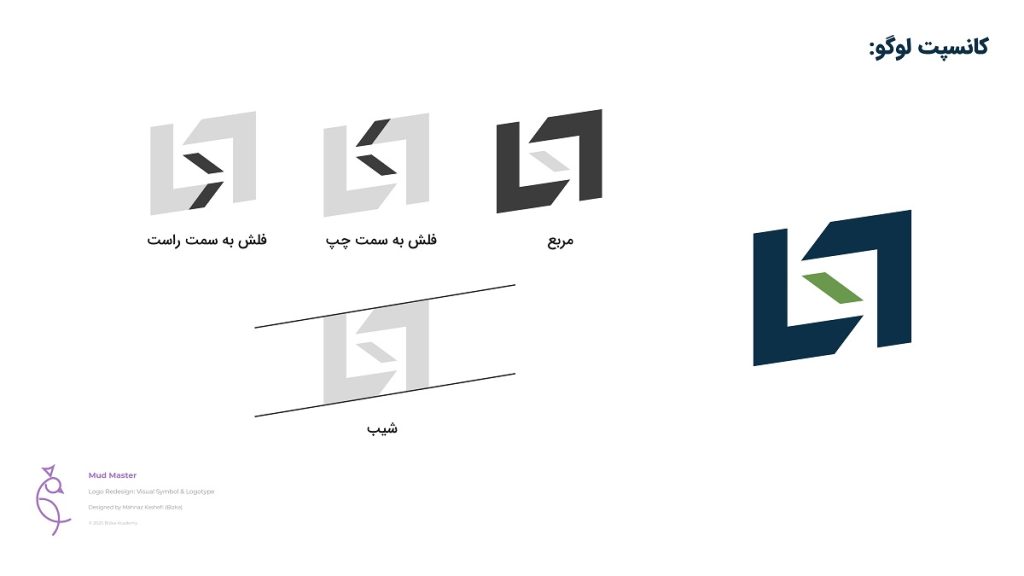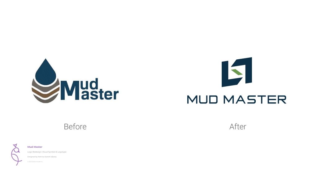 لوگوی قبلی برند MUD MASTER توسط یک ابزار هوش مصنوعی (ChatGPT) ساخته شده بود. ایده آن کلیشه‌ای و سطحی، با استفاده از نمادهای تکراری مانند قطره نفت یا لایه‌های زمین، مشابه صدها نمونه موجود در گوگل. چنین طرحی نه تنها تمایزی در بازار ایجاد نمی‌کرد، بلکه پیام دقیق و ارزش‌های برند را منتقل نمی‌کرد. علاوه بر این، لوگوتایپ قدیمی دارای ایرادات فنی متعدد در ترکیب‌بندی، تناسب حروف و خوانایی بود.