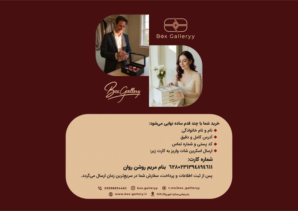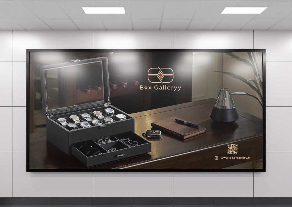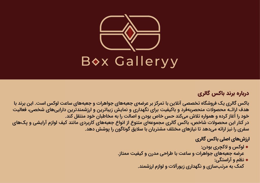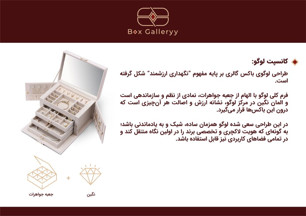 خوشحالم که آخرین پروژه خودم یعنی طراحی و بازطراحی کامل لوگو و هویت بصری برند Box Gallery، مجموعه تخصصی جعبههای جواهرات و ساعت لوکس را معرفی کنم.