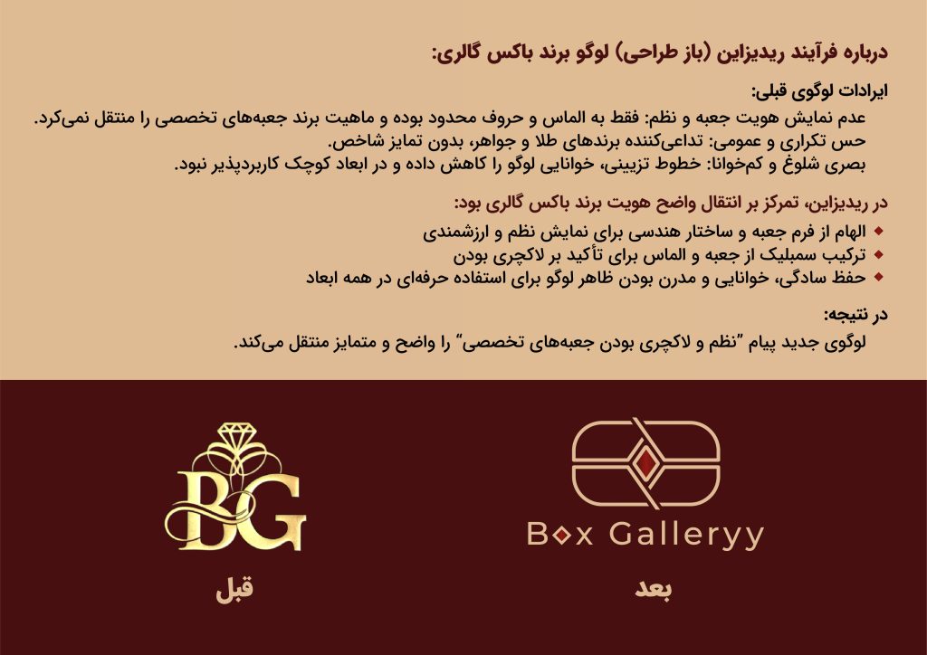 طراحی و ریدیزاین لوگوی Box Gallery | روایتی از برندسازی لوکس و مدرن| تیرماه 1404